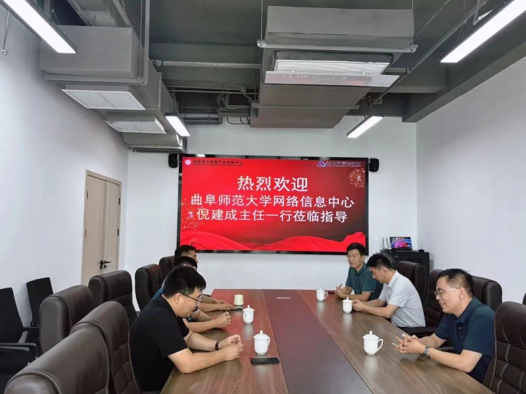 2024 年 7 月 31 日,曲阜师范大学网络信息中心倪建成主任一行莅临创新中心开展指导交流工作。创新中心赵斌教授对倪主任一行的到来表示热烈欢迎,并全程热情接待。